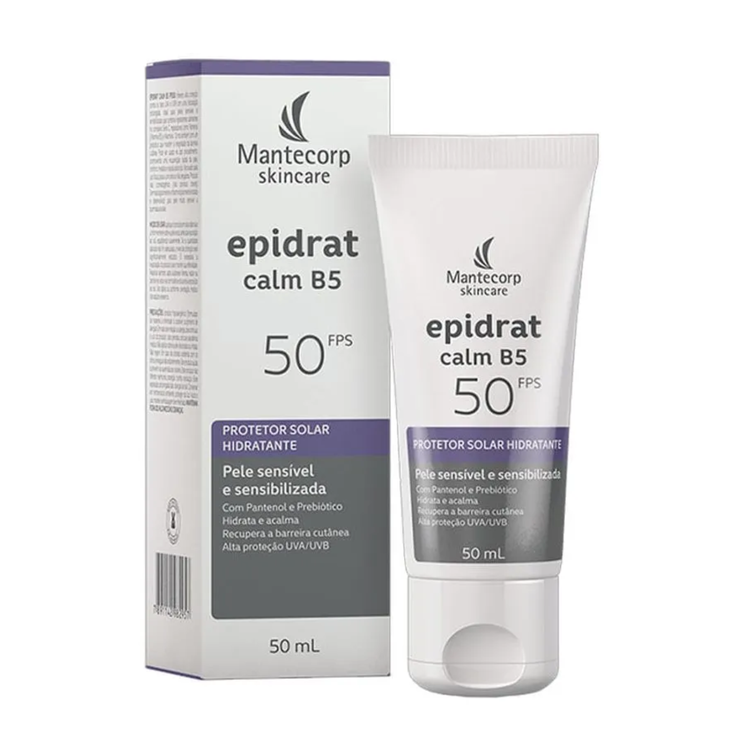 O Epidrat Calm B5 FPS 50 da Mantecorp Skincare é um protetor solar hidratante desenvolvido especialmente para a pele sensível e sensibilizada. Sua fórmula exclusiva conta com Panthenol (Pró-vitamina B5) e Prebiótico, ativos que proporcionam hidratação profunda, ação calmante e ajudam na recuperação da barreira cutânea, deixando a pele mais protegida e saudável. Com alta proteção UVA e UVB (FPS 50), o produto protege eficazmente contra os danos causados pela exposição solar, prevenindo queimaduras, manchas e o envelhecimento precoce da pele.