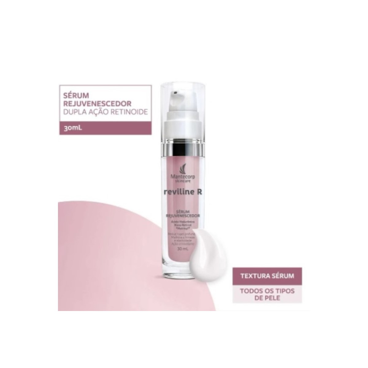 O Sérum Redutor de Linhas Mantecorp Reviline R Rejuvenescedor apresenta fórmula exclusiva e inteligente, com poderosa ação antioxidante. Com ingredientes de alta performance - como Ácido Hialurônico, Nano Retinol e Matrixyl -, embalagem moderna e textura extremamente leve, o produto garante rápida absorção, suaviza os vincos, melhora o toque e promove aparência jovial e radiante.